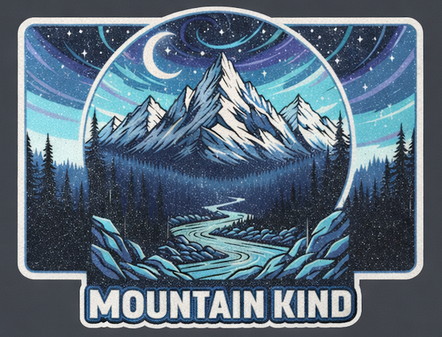 Bring the timeless allure of a starry night patch with a beautiful moon and high towering peaks directly to your accessories.